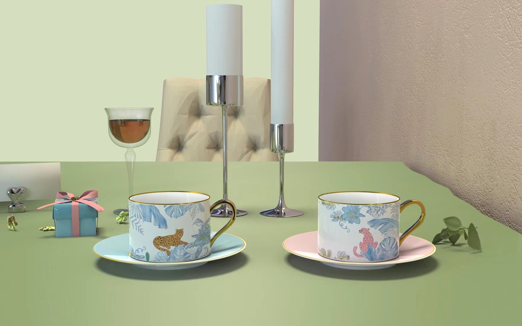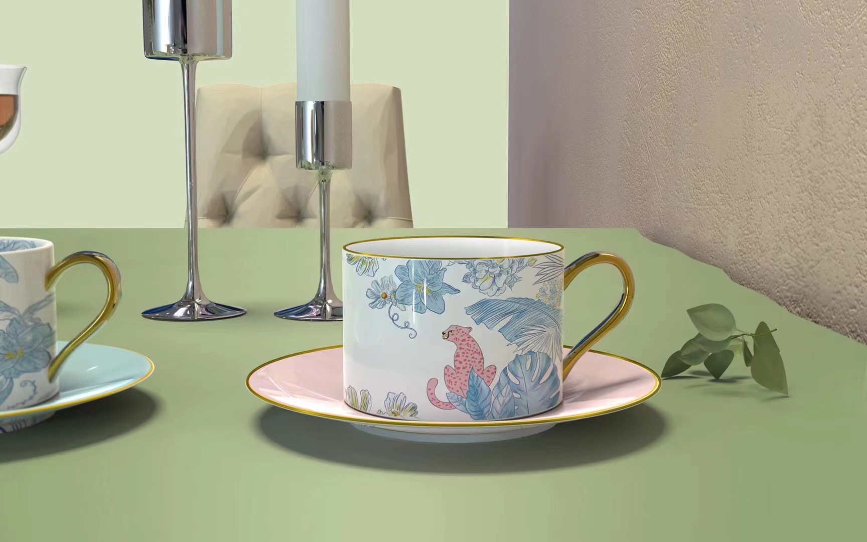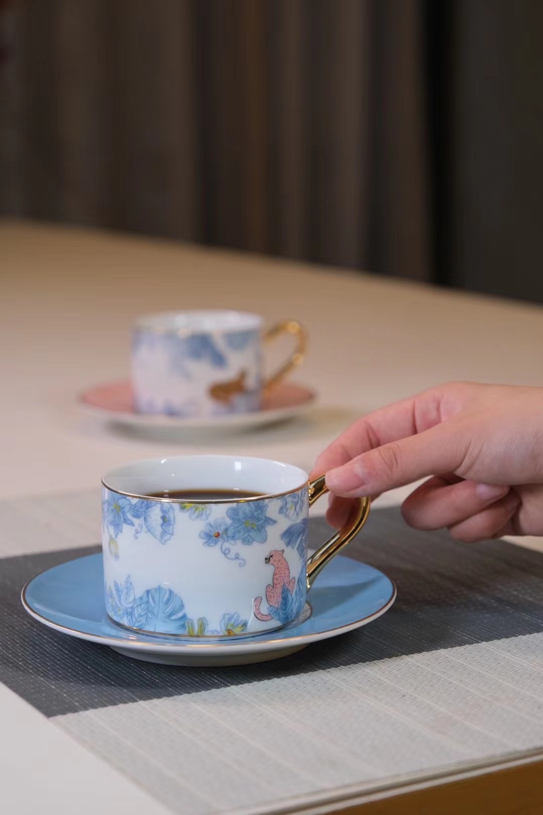 描金豹子陶瓷咖啡機帶杯碟
