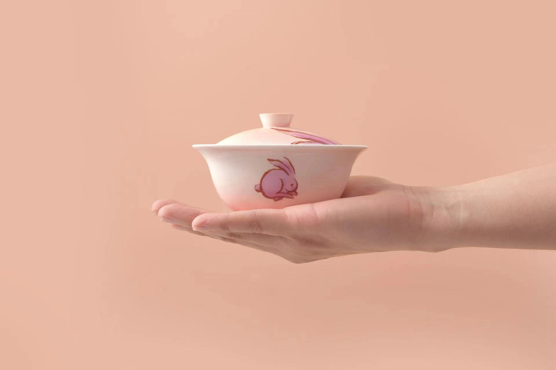 著名家居熊與楊 定制三色陶瓷蓋碗