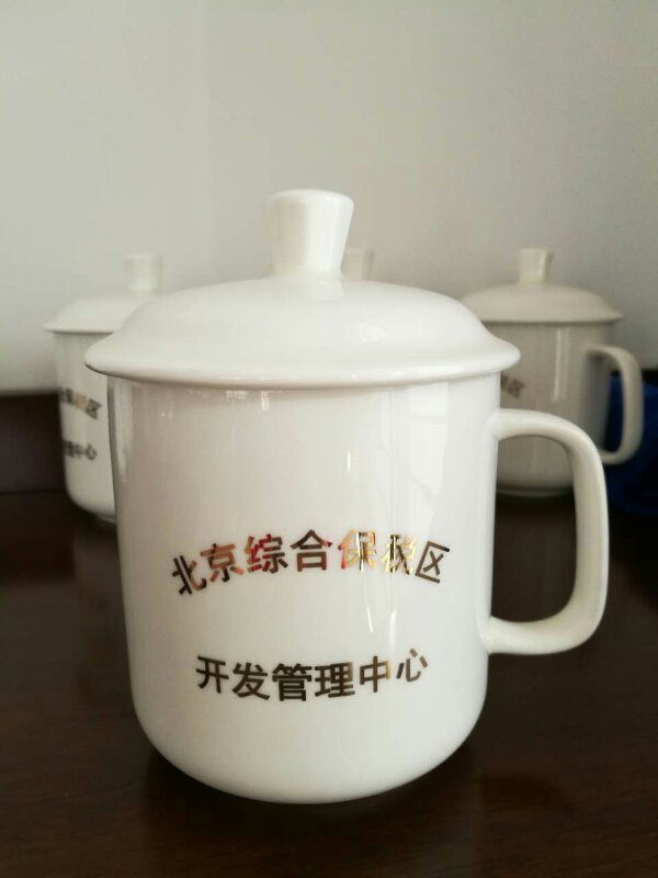 北京綜合保稅區定制 白色帶蓋大手柄陶瓷茶杯