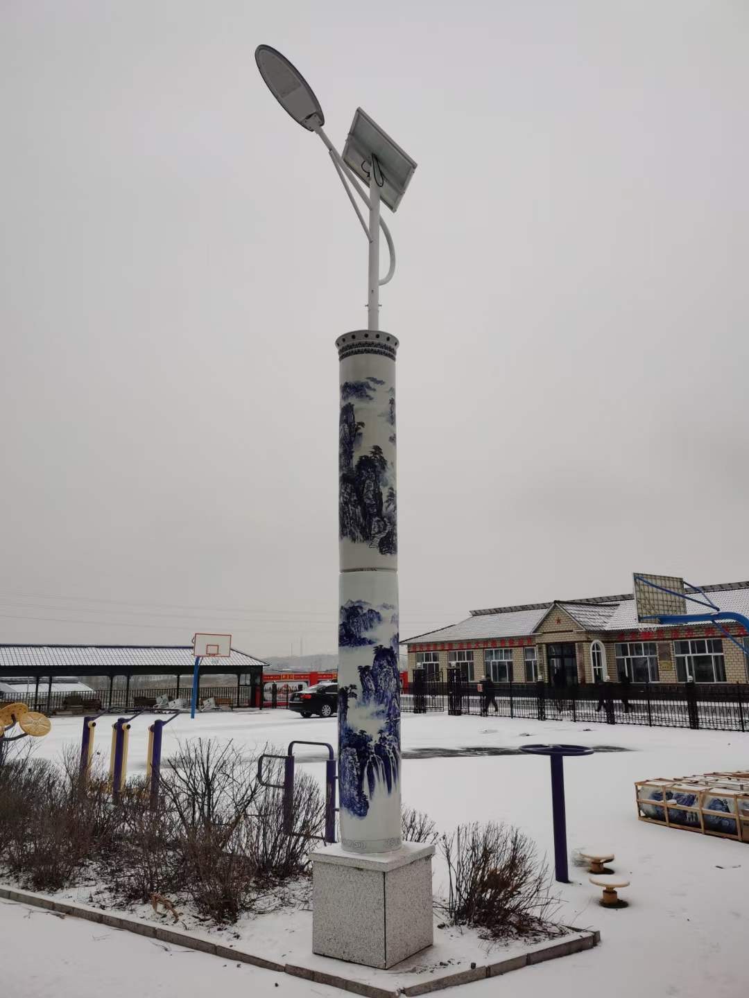 陶瓷燈柱的配置,如下:高1.9米,直徑0.45米,每根兩節(jié),一套兩根,陶瓷燈柱畫面主要以山水畫為主,每一節(jié)下面打一個洞,寫景德鎮(zhèn)制,由于顧客不知道怎么安裝,所以派了專業(yè)人員去指導(dǎo)安裝,本次的運費也我們這邊出的。來看看產(chǎn)品: