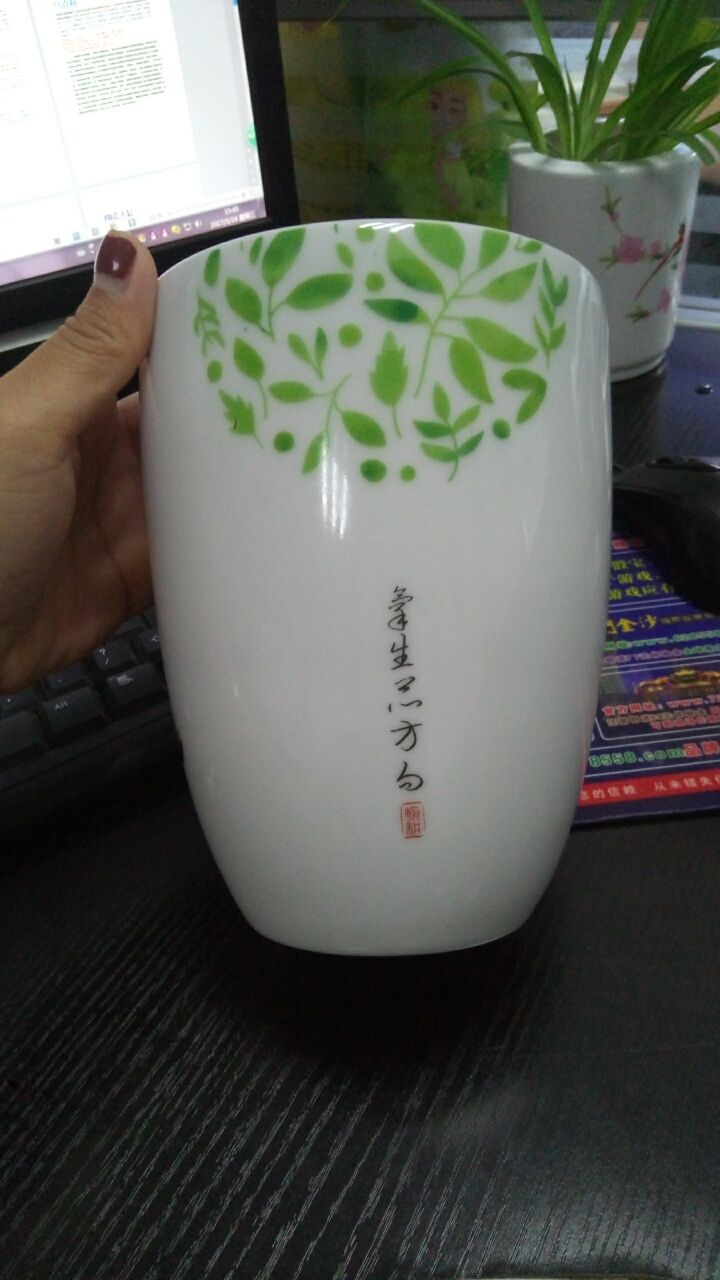 客戶定制 景德鎮手繪陶瓷綠葉文字加濕器