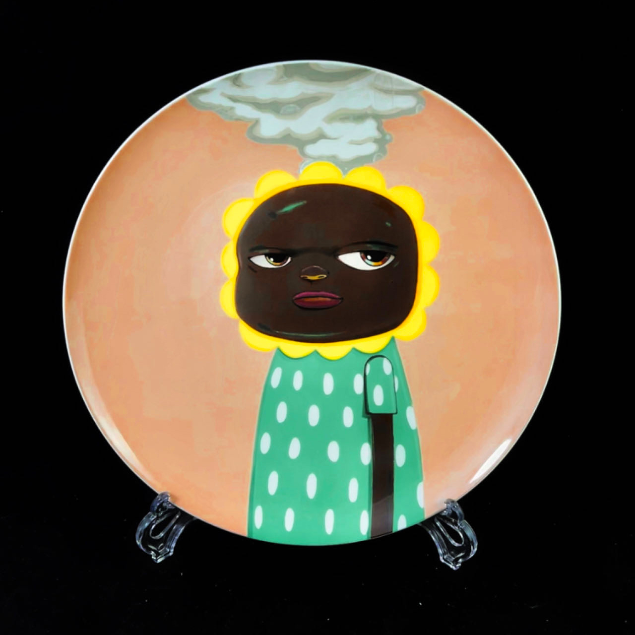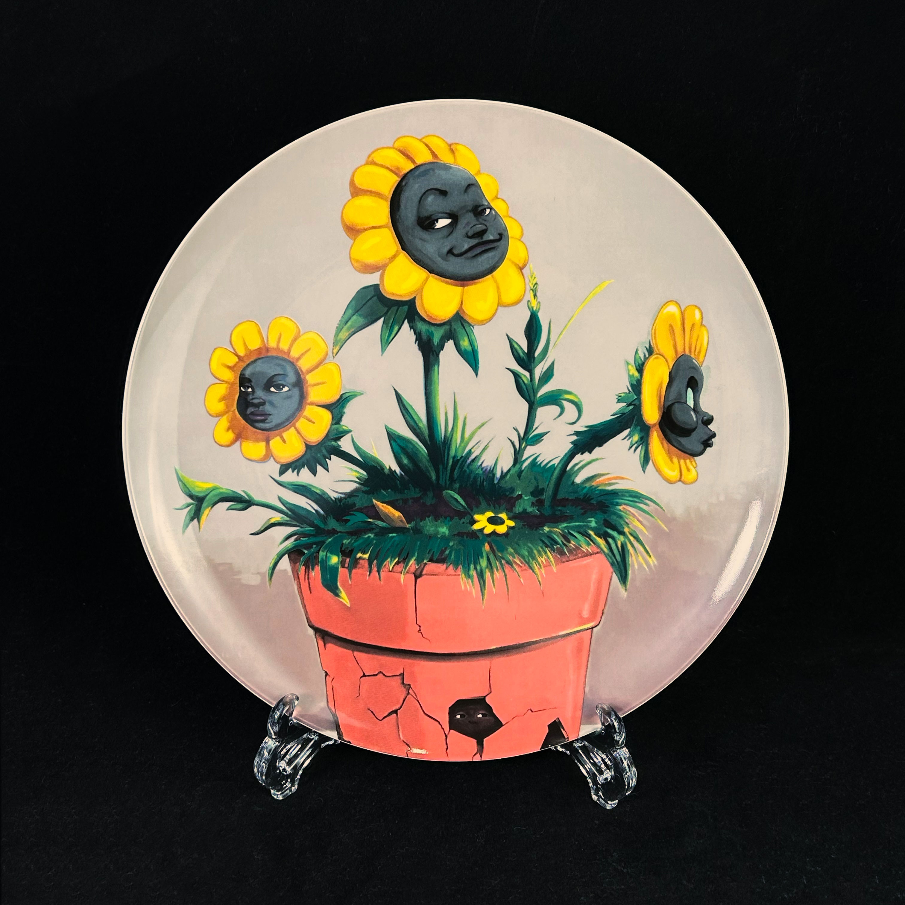 客戶定制 手繪抽象向日葵陶瓷紀念盤