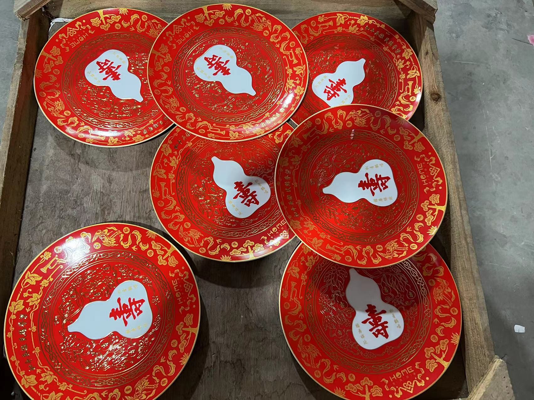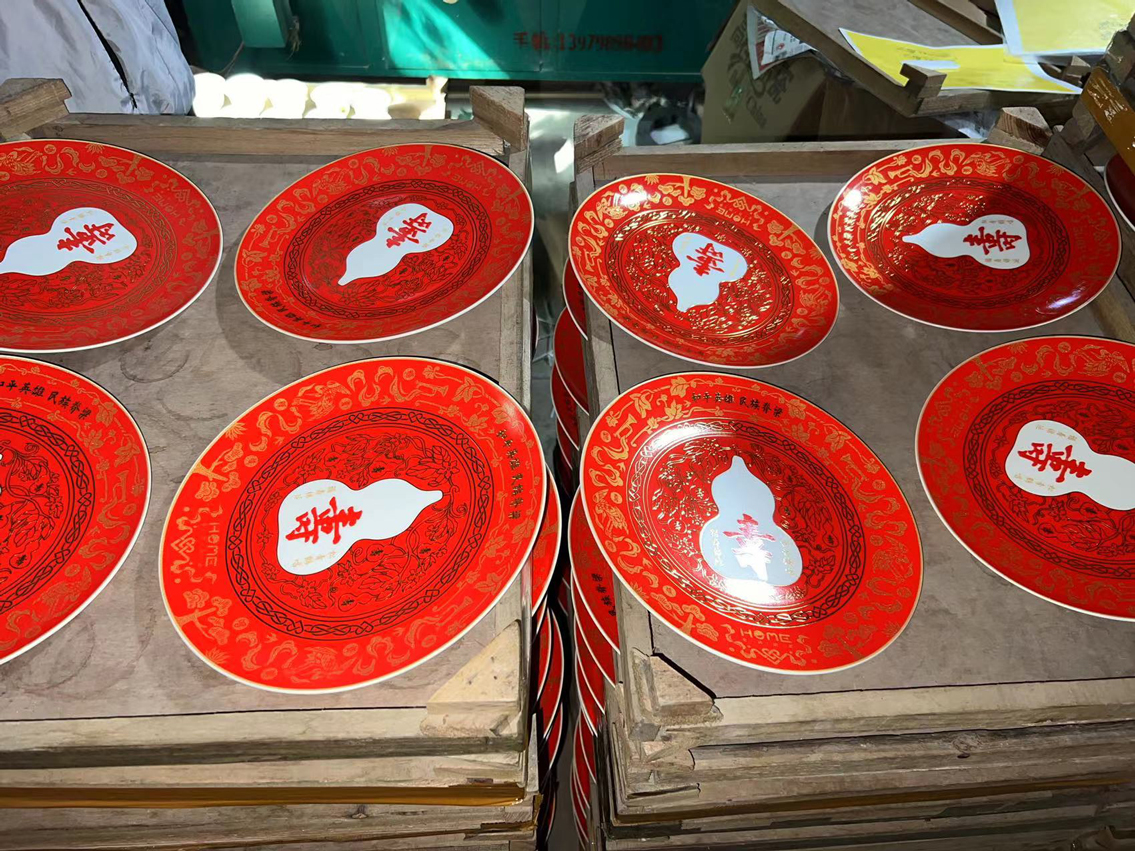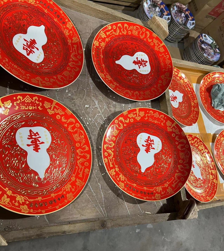 客戶找到我們,想要定制一批過壽的紀念盤,經過不斷設計調整。最終選定,客戶很滿意!下面是產品的大貨圖: