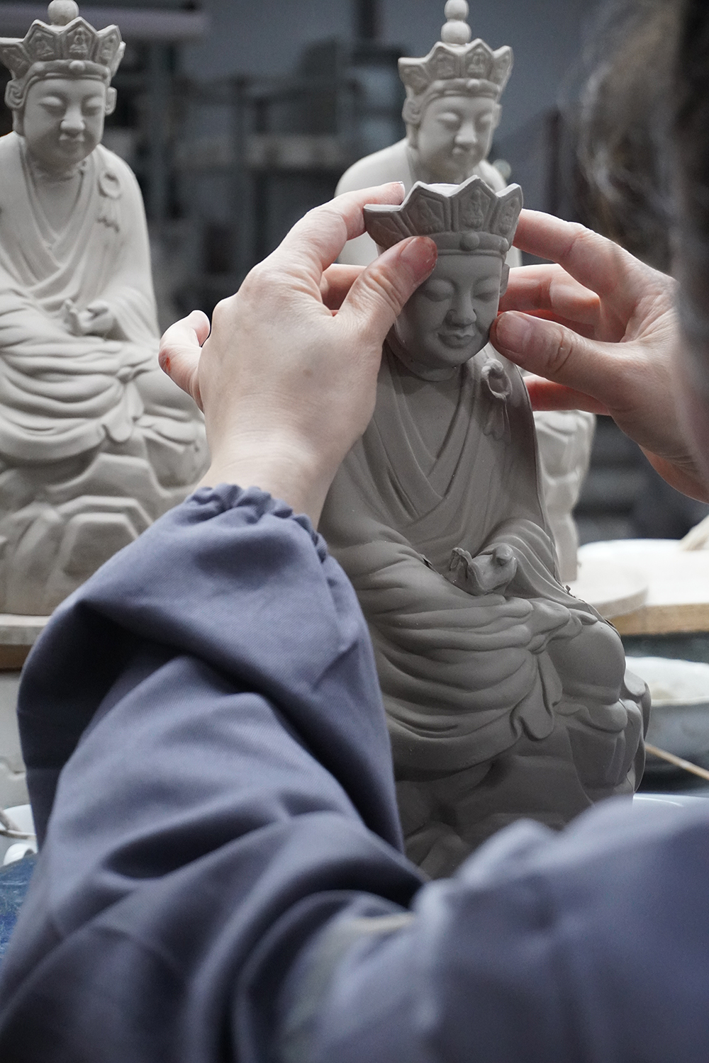 “無語菩薩”,原名叫“沉思羅漢”,是中國瓷器美術大師曾龍升的作品,《釉下加彩十八羅漢塑像》中的一件。收藏于景德鎮中國陶瓷博物館。這次也是很榮幸能參與我們景德鎮“網紅”無語佛的制作。目前陶溪川、御窯廠、名坊園等各大門店均有售賣。