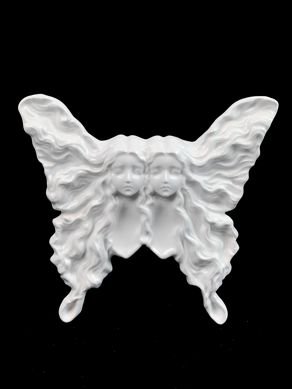 范思哲定制 創意蝴蝶雙生陶瓷擺件