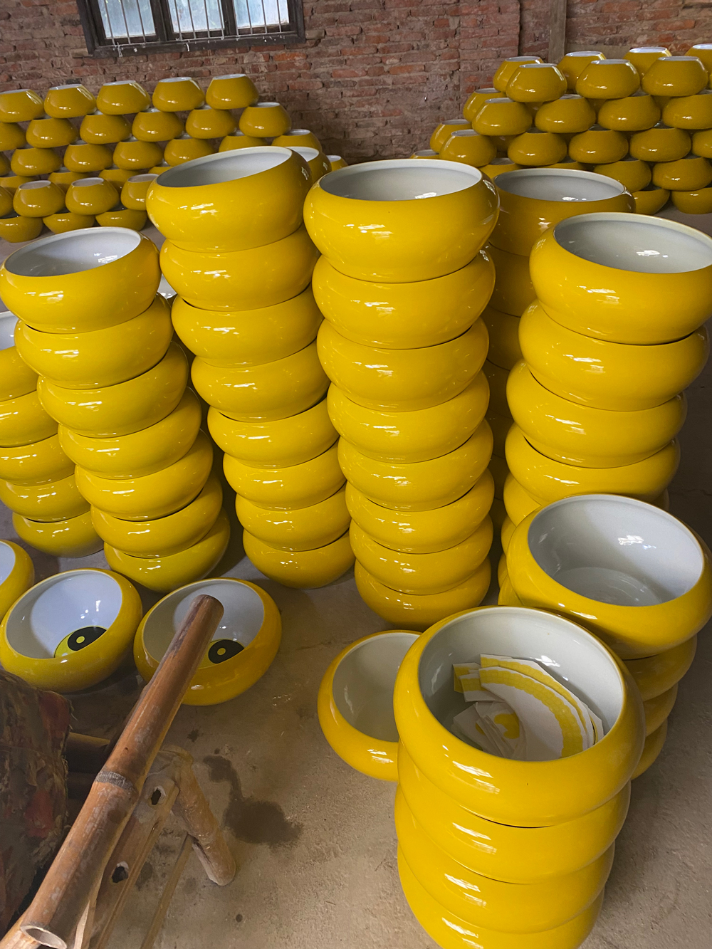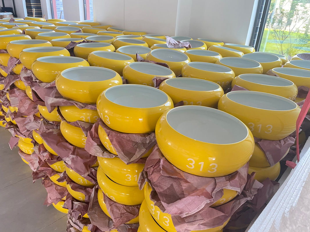繁瑣精致的盡頭是返璞歸真,單一專注的事物更適合如今快節奏的社會。這款黃色釉面的定制缸就是這樣,簡約大氣,缸面上僅有“313”這樣的標識性的字眼,以及那一圈簡練的線條。充分體現了什么是極簡主義。我們的大貨出來放一起更是體現明顯,寬寬的口加上弧形缸身,這樣的缸放到哪里都不會宣兵奪主,只會橫加精致,甘當配角,卻又有自己的風骨~