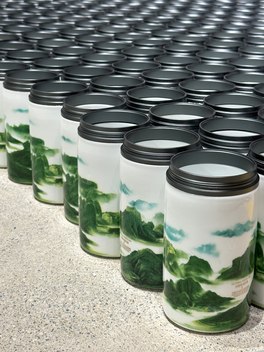 客戶找到我們,想要定制一批千里江山圖的罐子,將產品制作出來后,客戶很滿意!下面是產品的大貨圖: