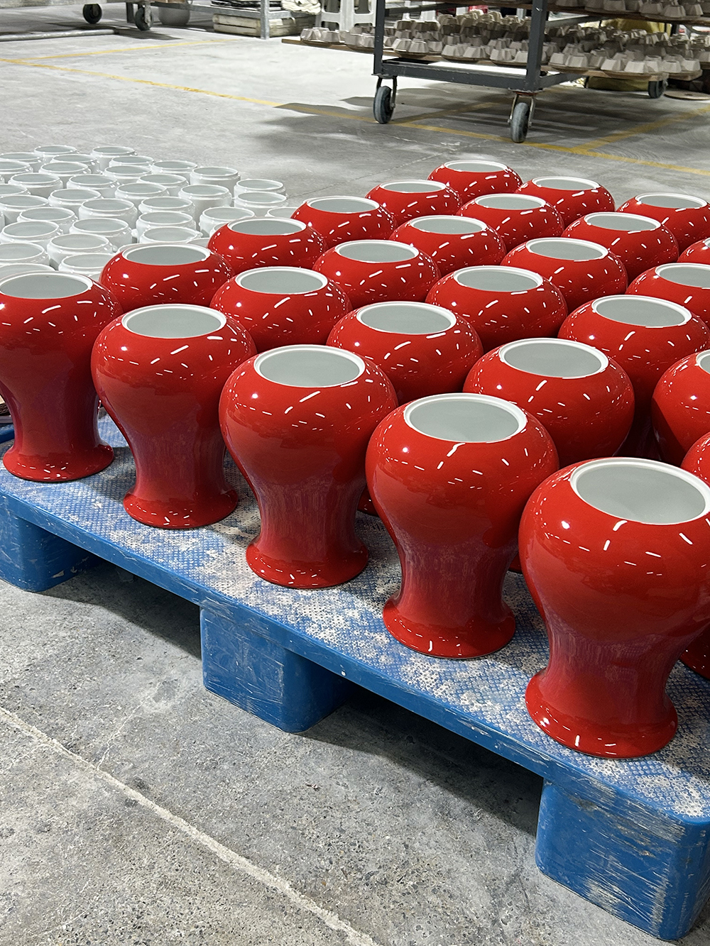 客戶找到我們,想要定制一批紅色的花瓶,將產(chǎn)品制作出來后,客戶很滿意!下面是產(chǎn)品的大貨圖: