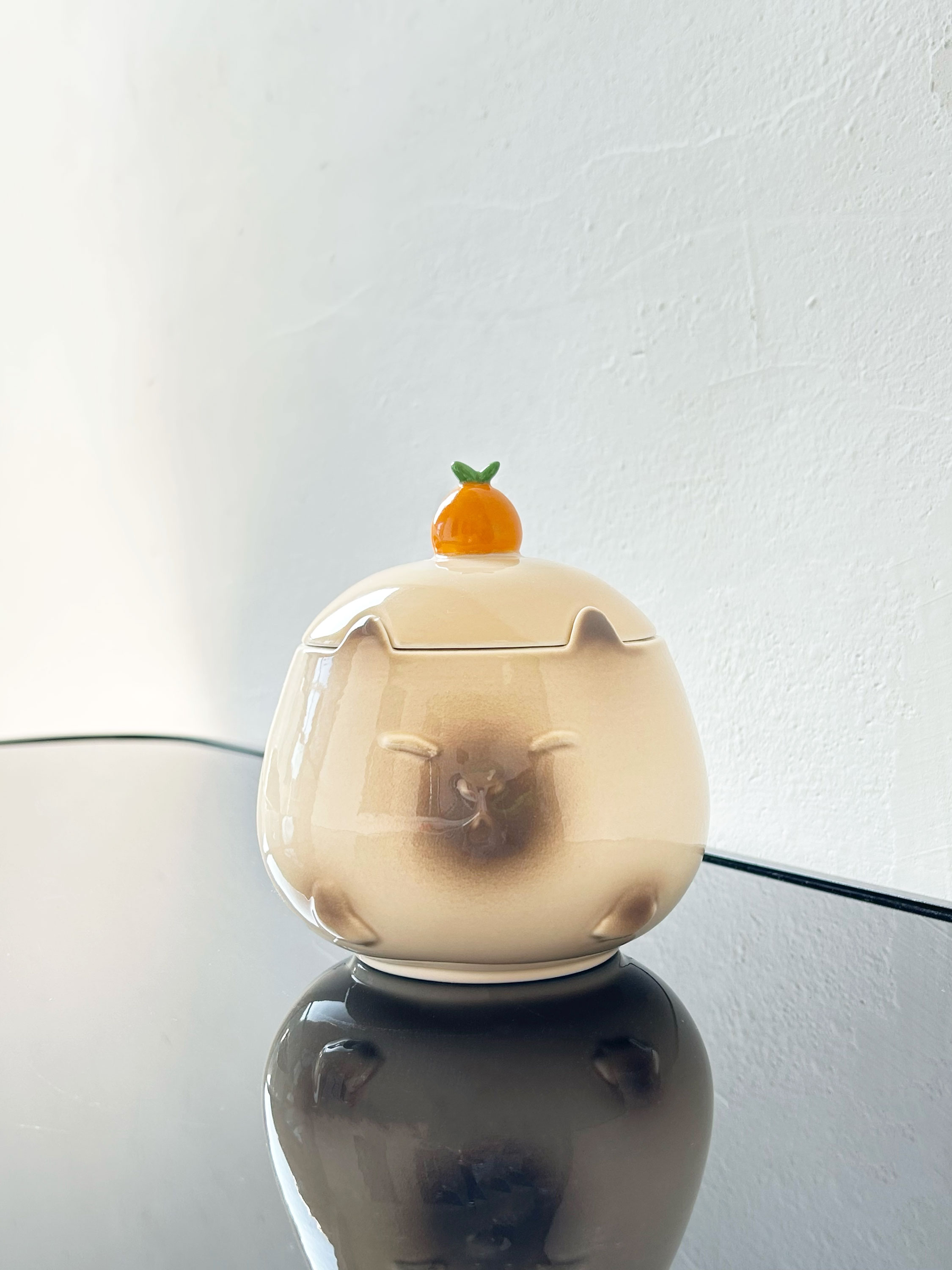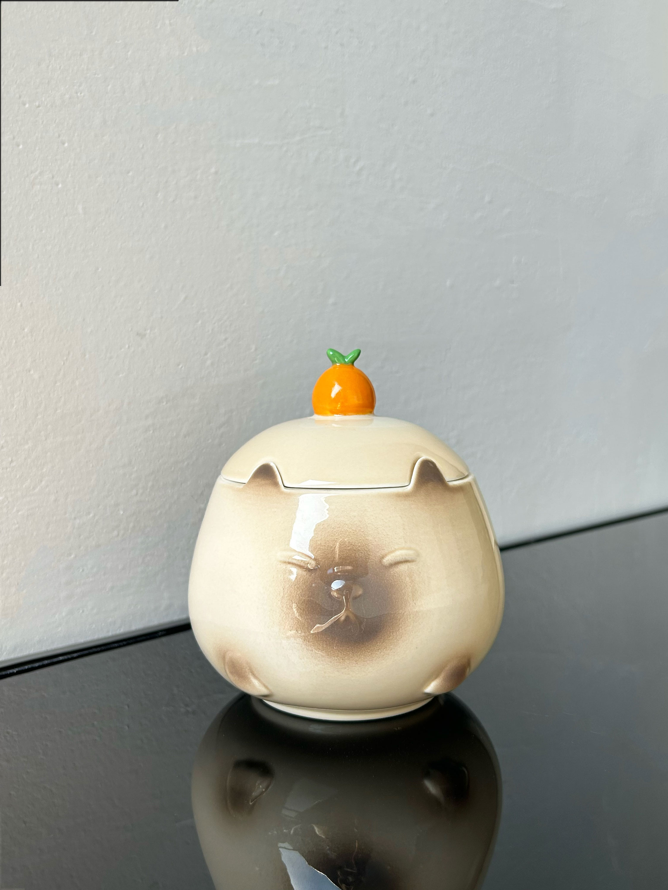 客戶找到我們,想要定制一批關于橘子與貓咪結合的帶蓋馬克杯,經過不斷地設計調整,最終選定,下面是這款產品的實拍圖: